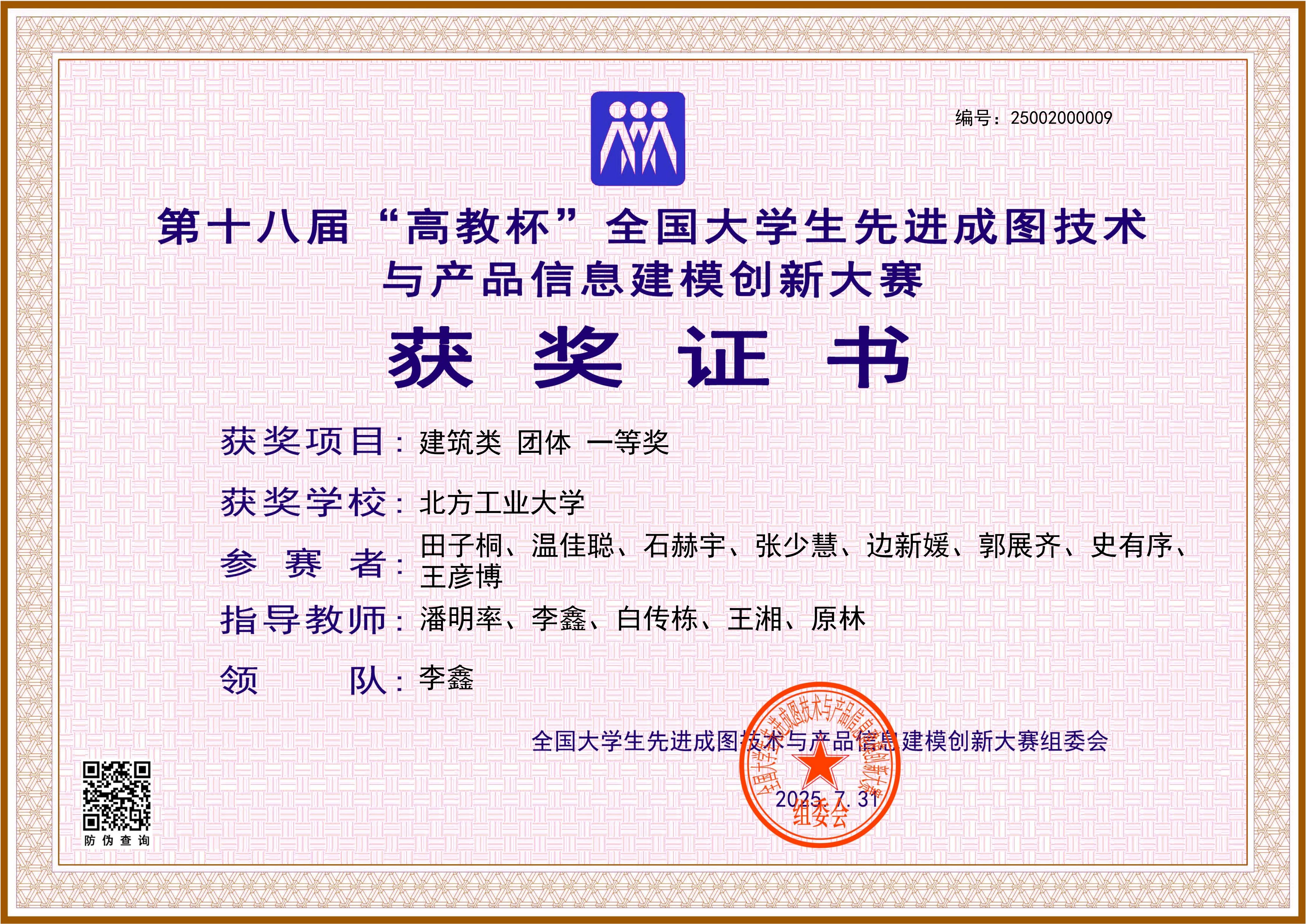 近日,第十八届“高教杯”全国大学生先进成图技术与产品信息建模创新大赛在山西省太原市落下帷幕,我校学生在建筑类赛道的角逐中,获团体类一等奖1项(全国排名第9),个人一等奖4项,二等奖9项,三等奖3项,获优秀指导教师一等奖5项。