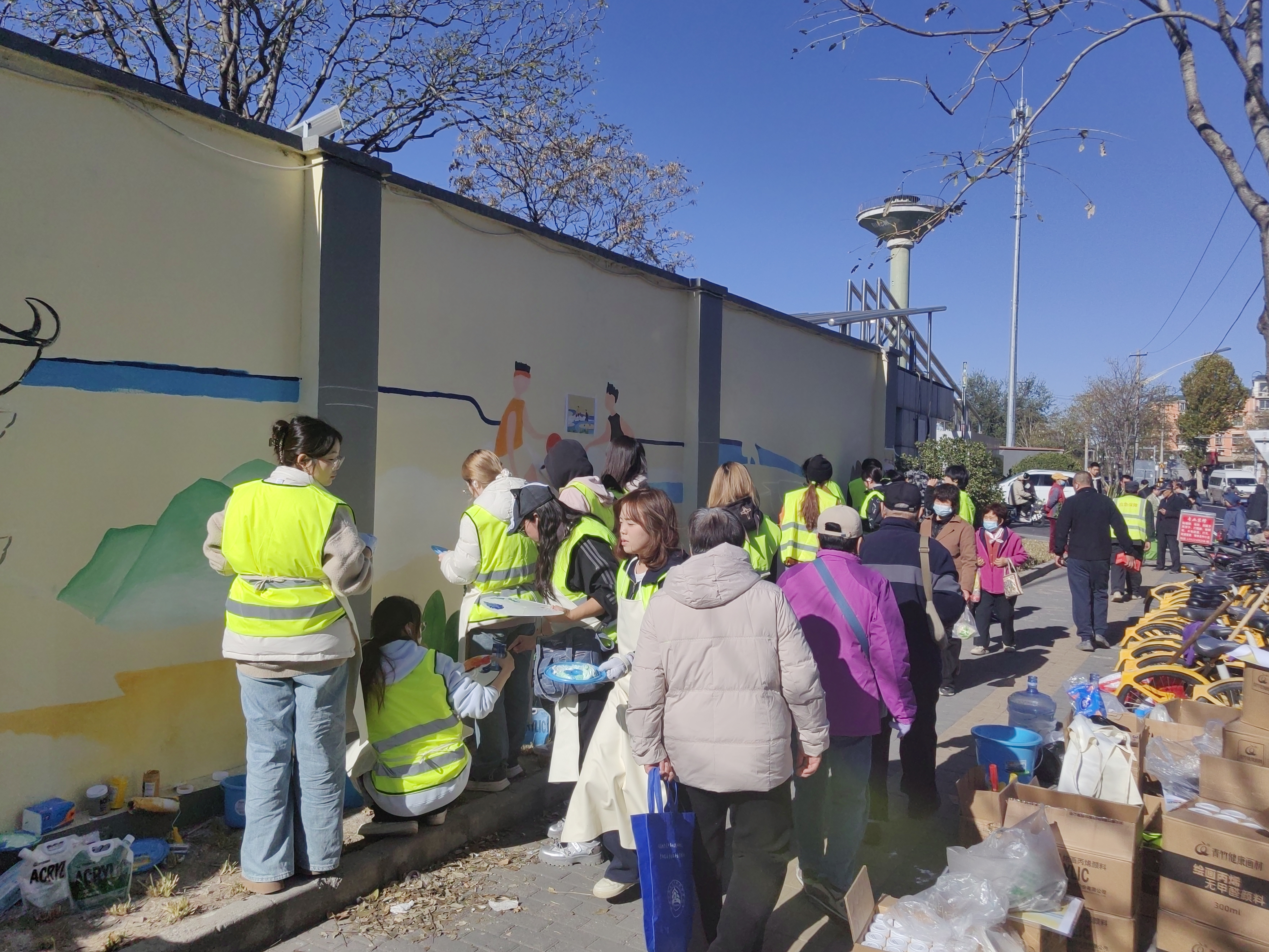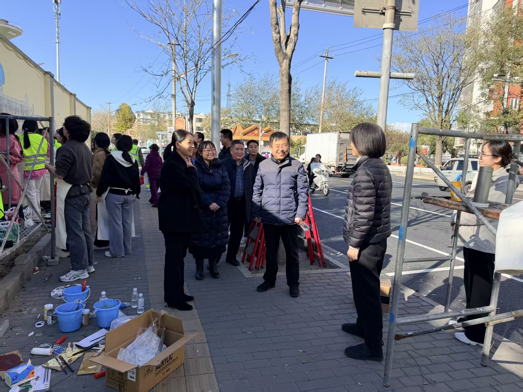 清晨的第一缕阳光尚未照上墙头,空气中还透着凛冽的寒意,师生们已经到达现场热火朝天的铺开了绘制工作,晨练的街坊邻居纷纷驻足观看,拍照点评,当地的小朋友们也在同学们的鼓励下拿起画笔热情参与,用手中的画笔美化自己的生活环境。宛平街道党工委孟丹书记、办事处刘颖主任对我校墙绘团队进行了慰问,对墙绘工作给予了高度的肯定,指出这是校地共建“大学生实践基地”的又一重要成果,是当代大学生践行把专业成果落实在祖国大地上的生动案例。