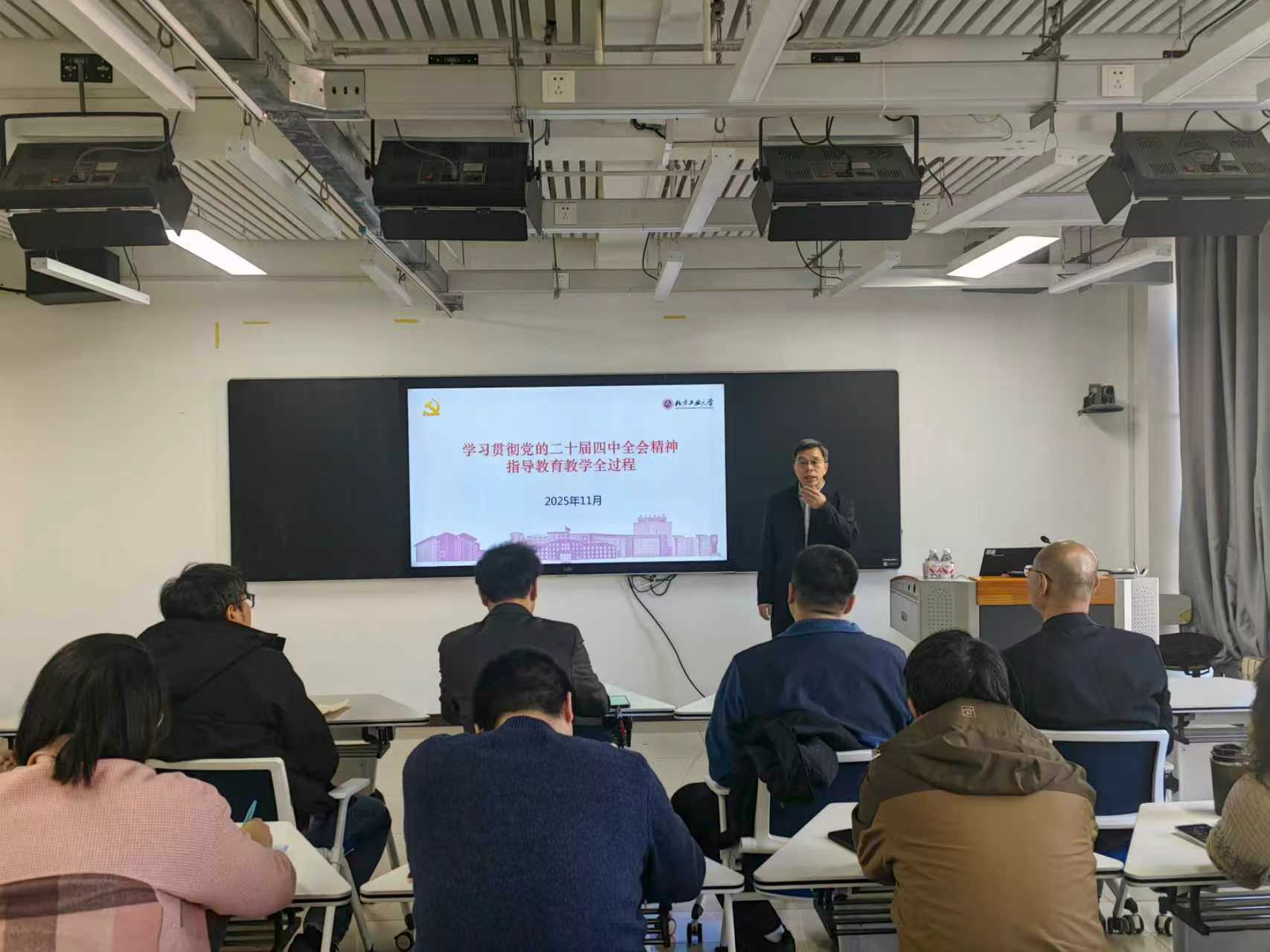 11月20日下午,6776永利集团在浩学楼西403举行学习贯彻党的二十届四中全会精神报告会,校纪委书记段辉建做辅导报告。学院班子成员、系部主任、党支部书记及全体教师党员参加学习。
