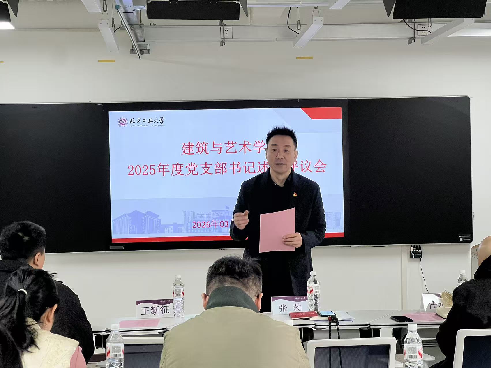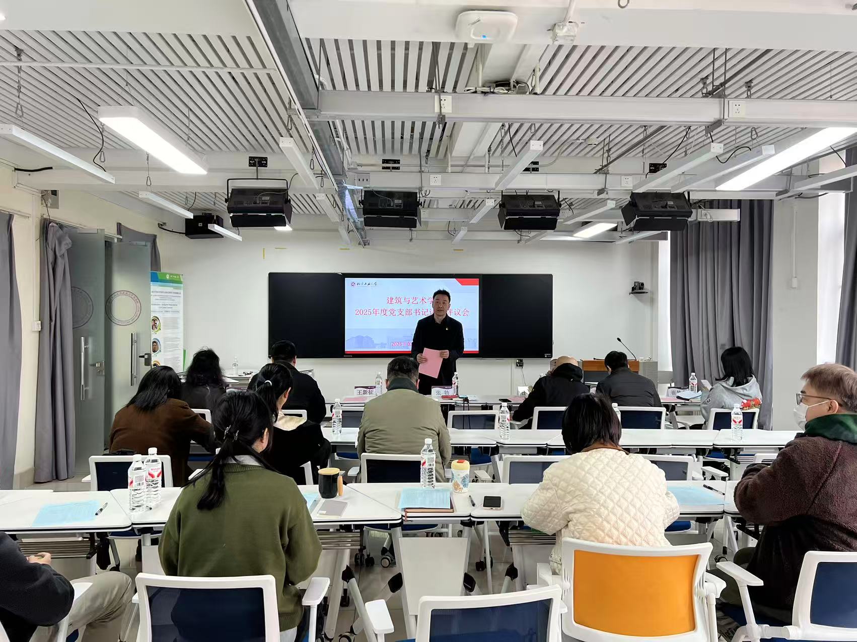 学院党委书记张勃对述职工作进行总结并部署2026年支部工作。充分肯定各位支部书记在过去一年的工作和付出,各支部在基层党建工作中都有自己的思考和特色。在部署2026年党建工作时,他指出,学院以巡视和巡察整改为出发点,严格落实全面从严治党工作的各项要求,在强化理论武装、强基层堡垒、凝聚师生力量、服务中心工作等方面取得了阶段性成果。同时,指出各支部要锚定学院党员大会报告精神,以“数智化、绿色化、国际化”为目标,坚持重工业建筑再利用为重点的城市更新和以“文遗文旅文创”为特色的乡村振兴构筑特色发展战略,充分发挥教工支部统一思想凝聚人心、学生支部立德树人促学风的支部职能,坚持理论学习守好党规党纪底线,认真落实根据党建工作要点制定支部计划和党员履约践诺管理工作机制,聚焦2026年重点工作任务,充分发挥党支部战斗堡垒作用,不断推进学院事业高质量发展。