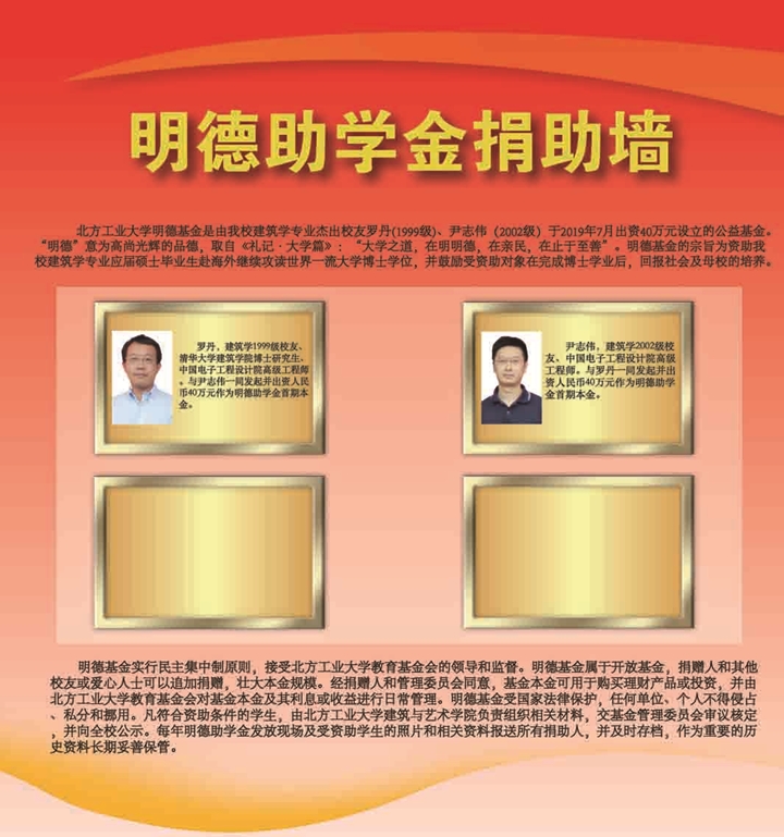 yl6776永利集团官网明德基金是由我校建筑学专业杰出校友罗丹、尹志伟于2019年7月出资40万元设立的公益基金。