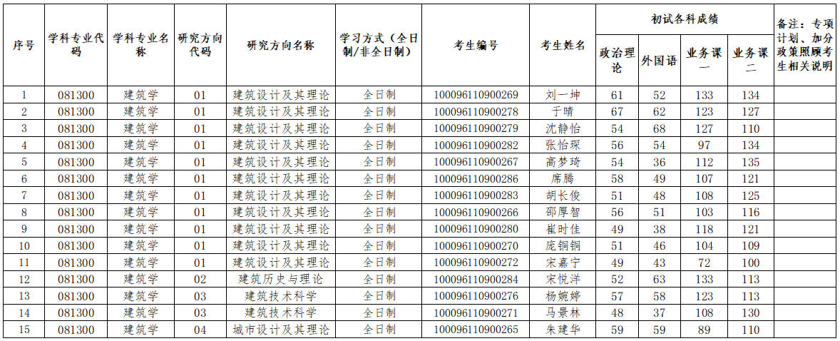 2026年硕士研究生招生考试建筑学(081300)第一批次复试考生名单公示