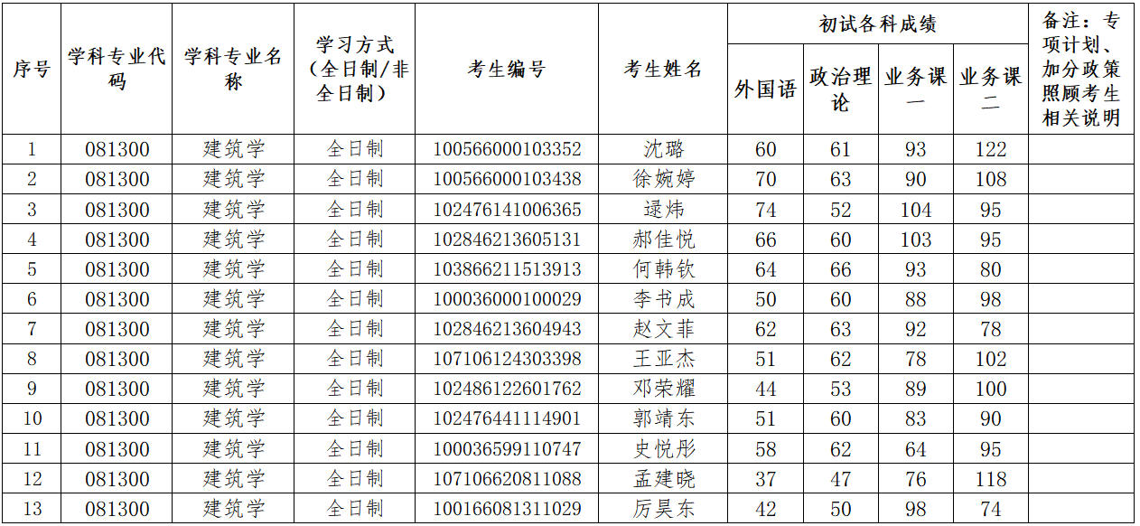 2026年建筑学(081300)第三批次复试考生名单公示(01建筑设计及其理论方向 )