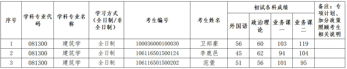 2026年建筑学(081300)第三批次复试考生名单公示(03建筑技术科学方向)