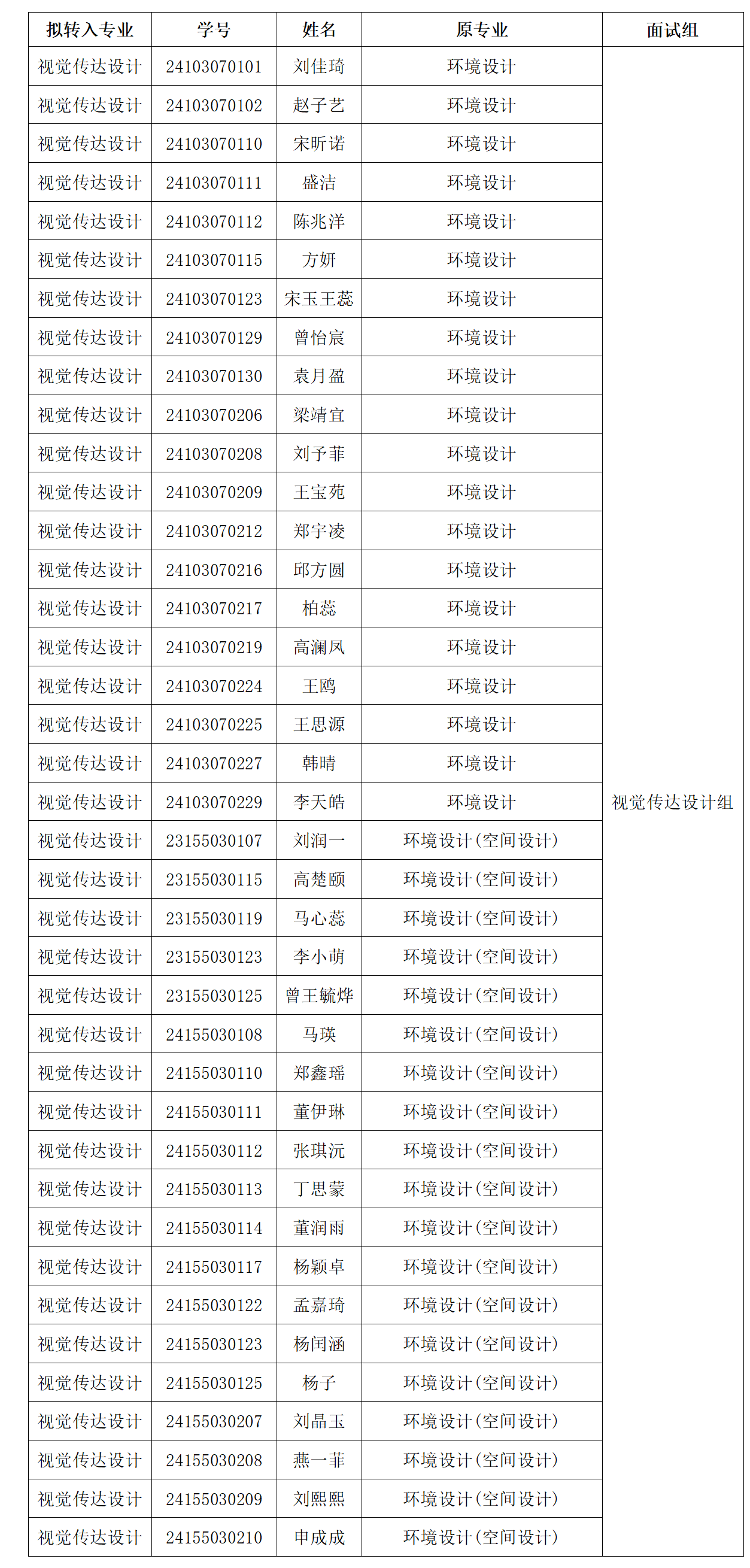 一、参加转专业考试学生名单